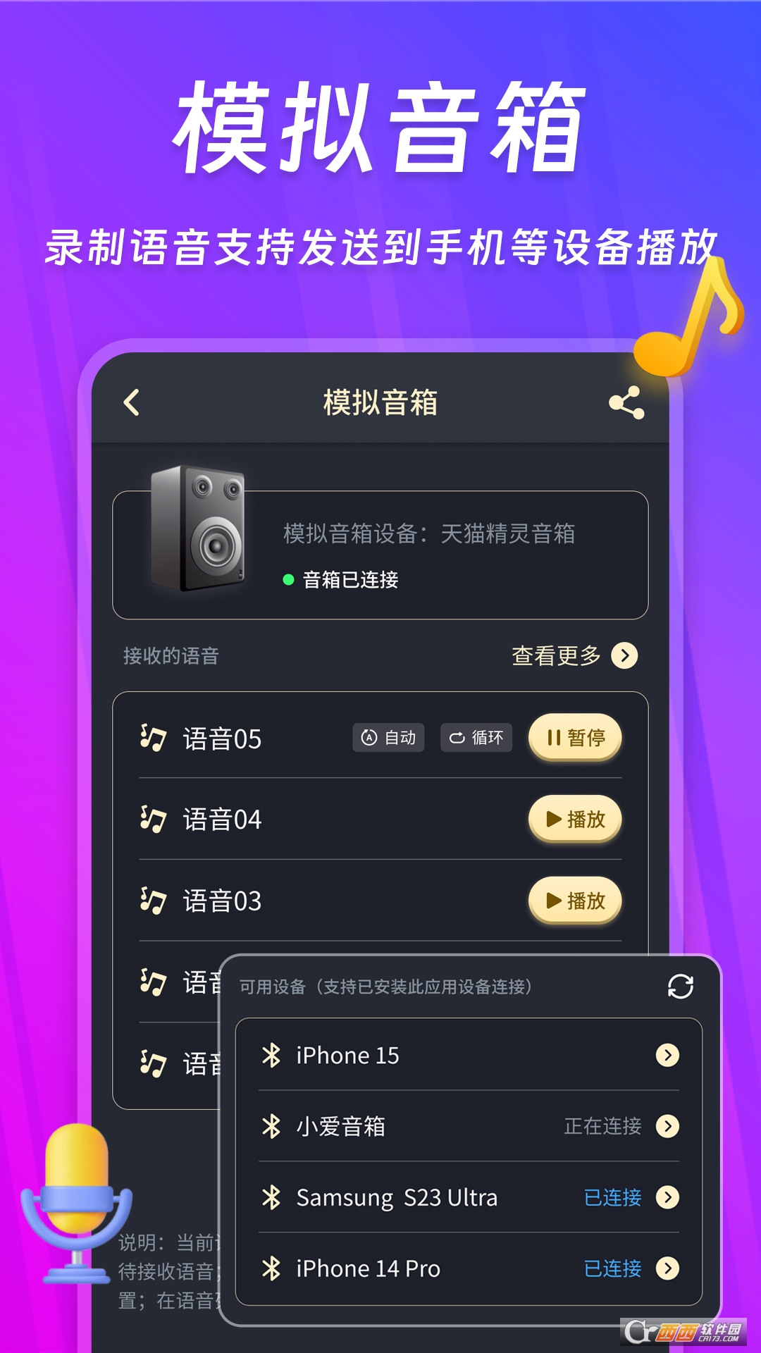 这款软件完全不用额外搭配复杂硬件,仅凭手机就能实现全部功能,极大降低了使用门槛和成本。操作逻辑简单直观,不管是年轻人还是中老年用户,都能快速上手,是日常工作和娱乐生活中不可或缺的音频小助手,是你手机中的必备软件。