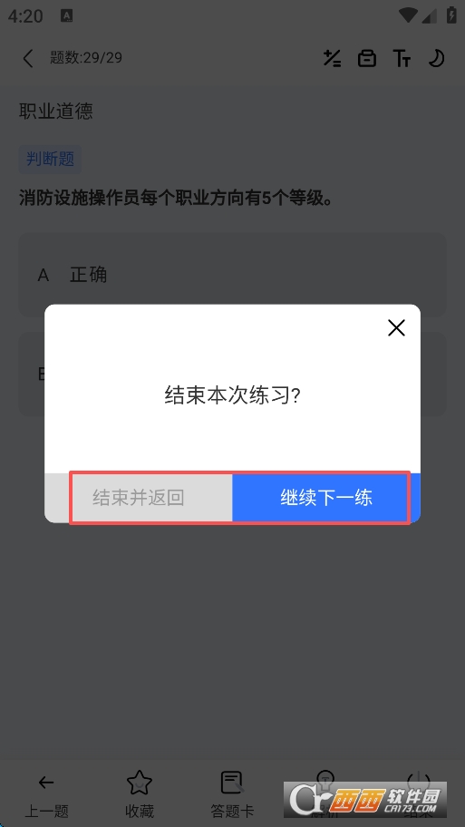 6、完成练习后,可以自行选择“结束并返回”或者“继续下一练”。