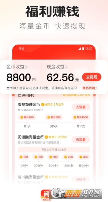 在书籍阅读页面,找到 “听书” 相关按钮点击即可开启听书模式,支持调节语速、切换章节等操作。听书同样可参与金币赚取活动,累计听书时长达标后,系统会自动发放金币奖励,最高可获得4320金币,具体奖励规则以页面显示为准。