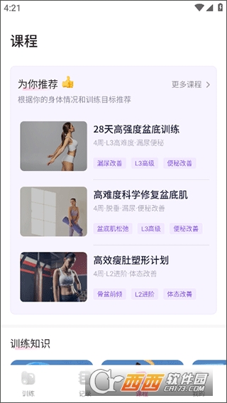 软件核心功能就是提供丰富的盆底肌运动课程,所有课程都有清晰的真人视频演示和详细的动作讲解。从基础的发力技巧教学到进阶的强度训练,循序渐进引导用户掌握正确的凯格尔运动方法,避免因动作不规范导致的无效训练甚至身体不适,有需要的话就快来试试吧。