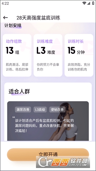 3. 备孕女性。规律的盆底肌训练能增强盆底肌群力量,有助于减轻分娩痛苦,缩短分娩时间。软件的备孕专属课程难度适中,适合备孕阶段的女性提前锻炼,为顺利分娩做好身体准备。