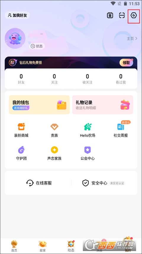 3、在个人信息界面点击右上角的“齿轮”图标打开设置界面。