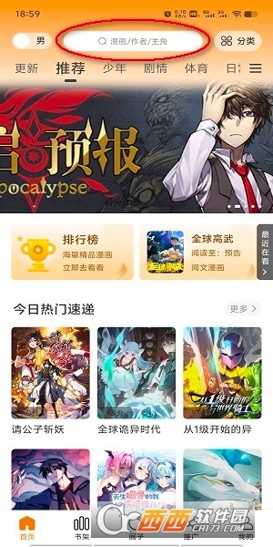 1,打开比熊漫画后,点击“首页”最上面的搜索框