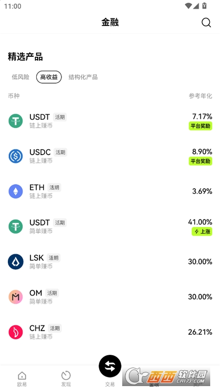 全品类交易产品矩阵平台覆盖超 300 种加密资产及 1000 余个交易对,囊括比特币、以太坊等头部币种。交易模式上,除了基础的现货交易,还提供期货合约、永续合约、期权、杠杆等多元衍生品工具。同时,平台还上线余币宝、质押理财、流动性挖矿等多种 “赚币” 服务,助力用户让闲置资产 “生息”;专属的 Launchpad 平台 Jumpstart,更支持用户通过平台币 OKB,参与优质新项目的首发认购。