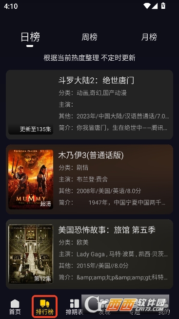 精准资源检索体系:不仅支持通过片名、演员、导演、类型等关键词精准搜索,快速锁定目标影片,还按影视大类及地区、年份、热度(日榜 / 周榜 / 月榜)多维度细致分类,搭配清晰导航,方便用户高效找片。