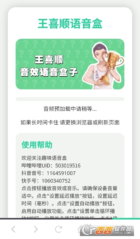 王喜顺语音盒app安卓版是一款免费的趣味语音盒软件,围绕着主播王喜顺打造的语音语录盒子,提供惊喜的趣味音效资源,免费点击免费使用,提供丰富的手机端语音盒子工具,适用于多种场所,非常精彩,感兴趣的小伙伴们一定不要错过了。