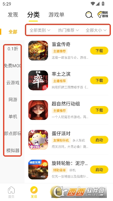 2,可根据多种游戏种类,题材类型分类筛选