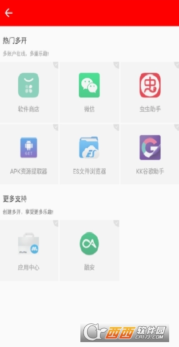 应用多开/克隆:为核心功能,支持为绝大多数应用创建多个独立实例。
