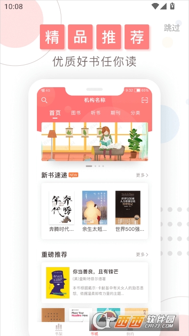 分类板块清晰:设有书城、图书、听书、期刊等专属板块,搭配新书速递、重磅推荐栏目,资源查找更高效。板块划分贴合用户使用习惯,分类逻辑清晰,无论是精准搜索还是随缘发现好书,都能快速找到目标。