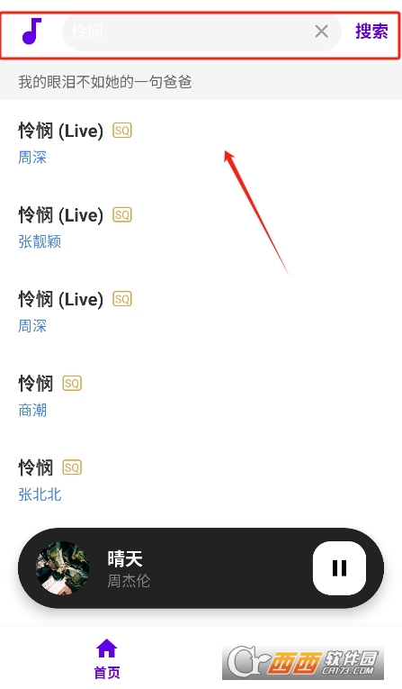 1、进入软件,点击搜索框搜索音乐