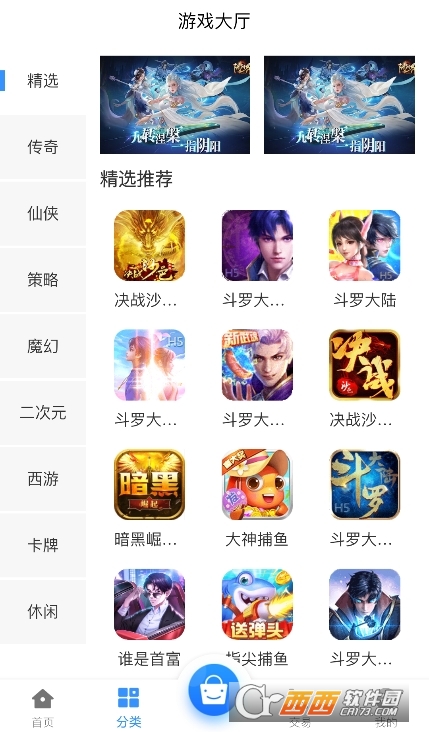 2、可以查看丰富的游戏类型栏目,涵盖了传奇、仙侠、策略、西游以及卡牌等
