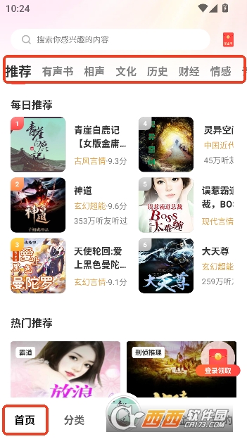 1,首页提供每日精选分类推荐