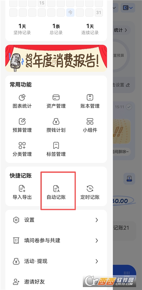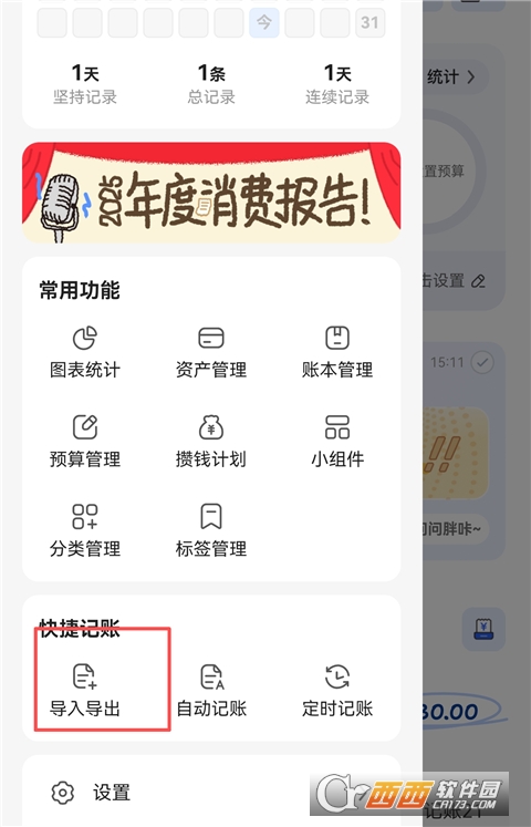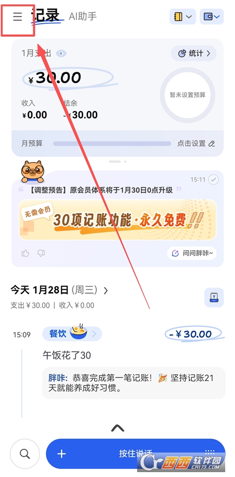 1、进入咔皮记账官方版App,点击左上角三横线标识。