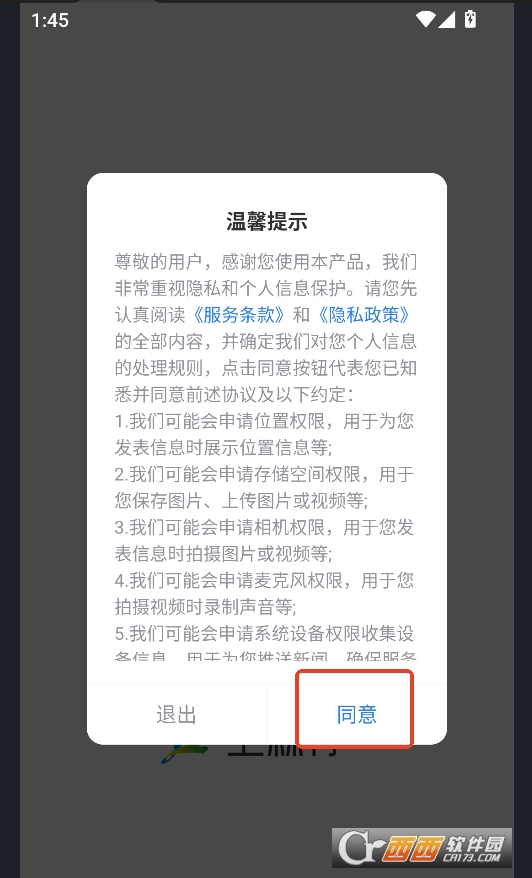 在西西下载安装该软件,点击同意即可