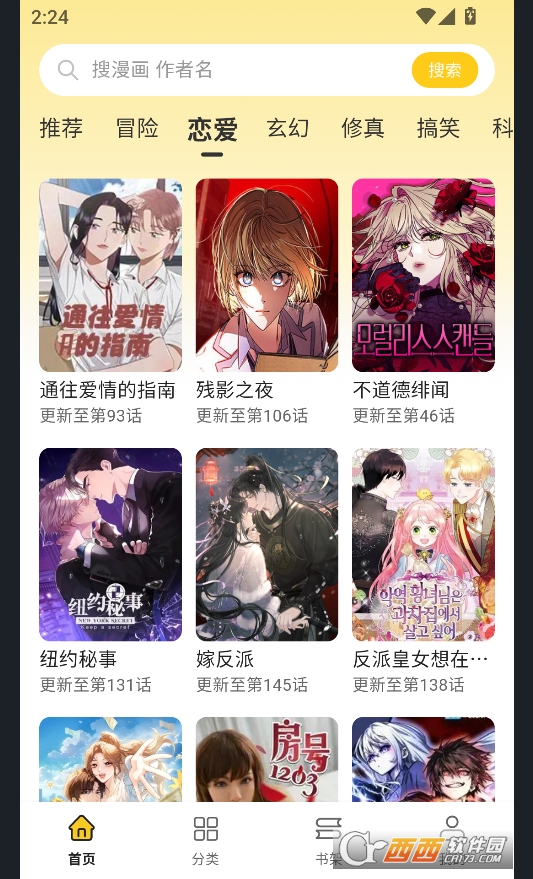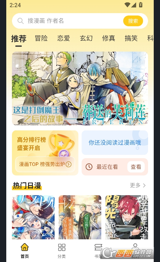 内置智能推荐算法,根据用户的阅读历史、收藏偏好,精准推送契合用户口味的漫画作品,每日持续更新资源,让用户轻松发现新番、好番,告别“书荒”烦恼;支持关键词搜索功能,输入漫画名称、作者或题材关键词,可快速定位目标资源,搜索高效便捷,同时可通过题材分类筛选,进一步缩小查找范围,提升资源查找效率。