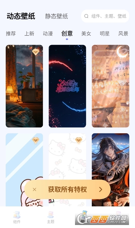 资源商城:庞大的在线壁纸与主题库,涵盖抽象艺术、自然风光、动漫游戏、极简设计等多种风格,支持关键词搜索与分类浏览。