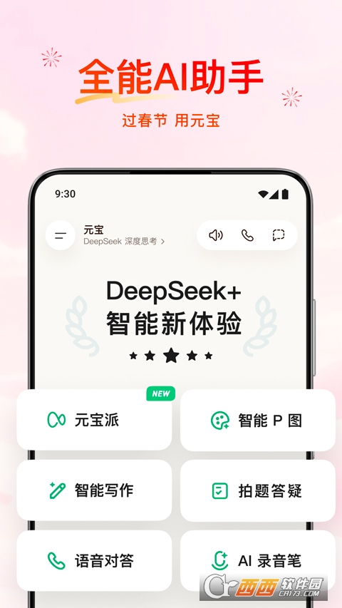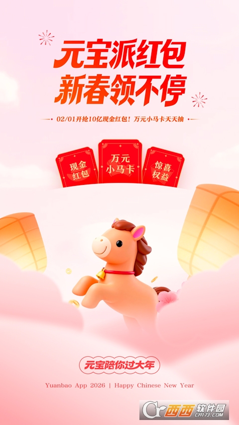 腾讯元宝app瓜红包分10亿版是一款功能丰富,便捷实用的AI大数据模型助手,能够为用户提供全方面一站式的AI智能服务,包含AI生图/AI视频创作,智能P图AI写作,语音对答拍题解疑等功能, 新春特别活动元宝派红包,每天都能抽取现金红包,瓜分10亿奖金,新春领不停,万元小马天天抽,赶紧下载体验吧。