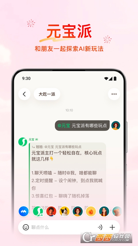 AI 社交元宝派:AI以群友身份常驻,支持接梗互动、生成表情包,还能 @总结群聊重点、设置打卡提醒,打通腾讯视频/QQ音乐实现 “一起看 / 听”。群聊中可一键触发AI整理聊天纪要、提取关键信息,表情包生成贴合语境风格,支持实时同步进度,让社交互动更具趣味性和实用性。