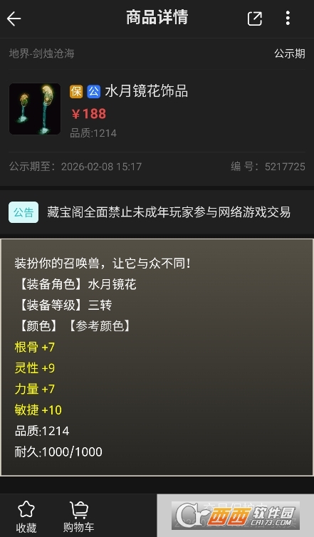 4、浏览结果:仔细查看角色详情页,分析其装备、召唤兽、坐骑、修炼等完整信息。可将其加入“收藏”以便比较。