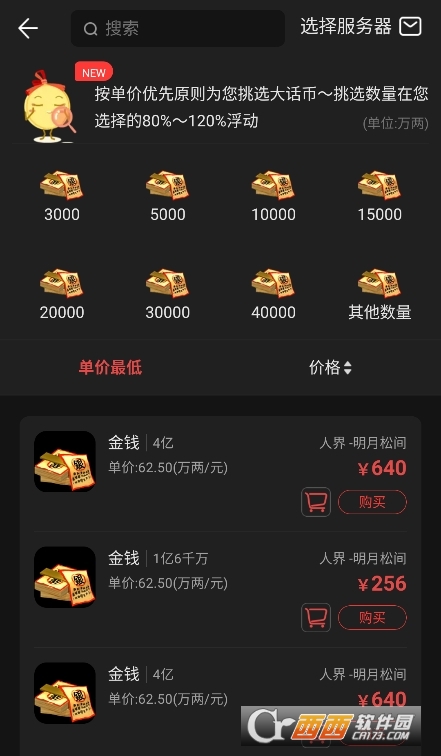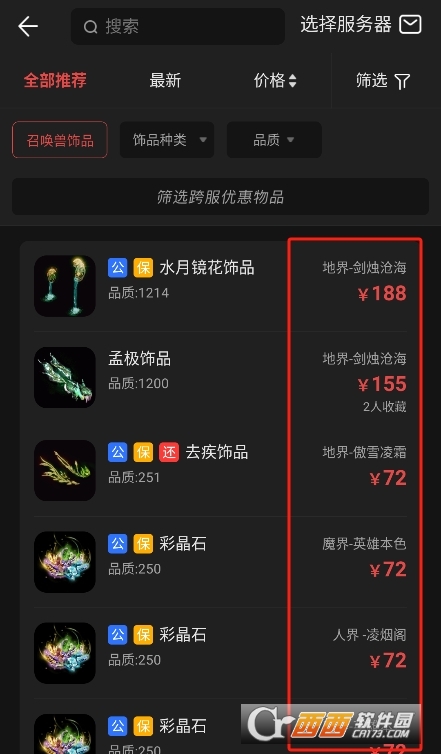2、使用筛选器:依次选择服务器、角色种族(如人族、仙族)、等级范围、心理价位等。