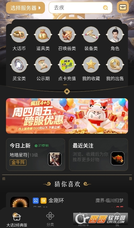 2、点击查看首页丰富的游戏道具、货币、召唤兽等虚拟商品