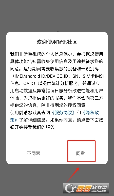 1、在本站下载软件,进入软件,同意隐私协议