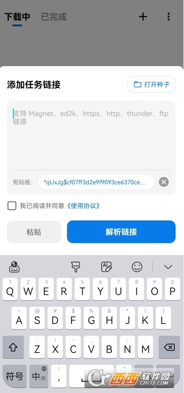 2、点击“+”手动添加链接/选择种子文件