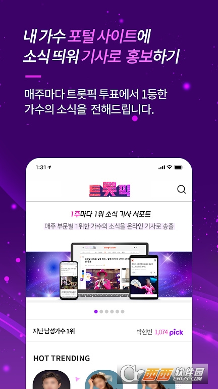 Trotpick是由韩国开发的Trot歌手专属应援平台,专为热爱Trot音乐、想要为心仪歌手助力的粉丝打造,提供免费下载及可选内购服务。作为综合性粉丝服务App,其核心定位是打通“粉丝应援-艺人曝光-互动传播”的全链路,让粉丝的每一份支持都能转化为实际影响力,同时聚合Trot艺人的独家内容,成为粉丝与偶像之间的情感连接桥梁。