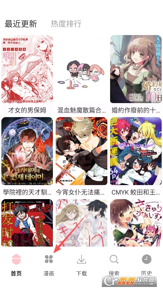 点击主页下方搜索想看的漫画