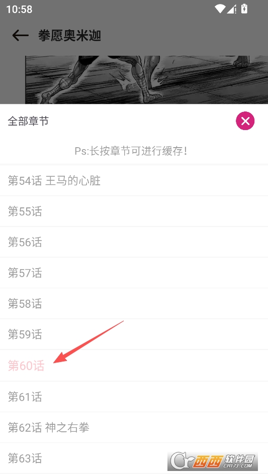 进入漫画阅读界面,点击下方章节列表