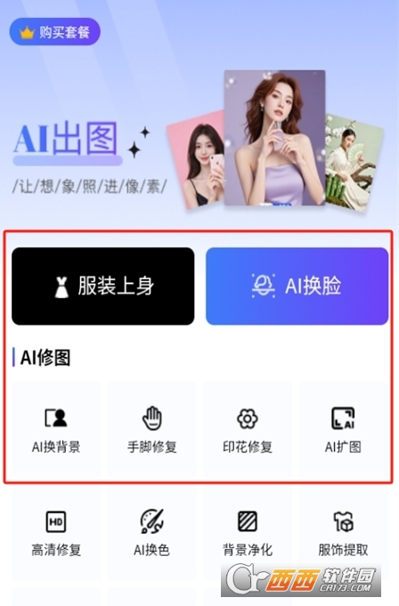 2、可以使用AI换衣、AI換脸、AI换背景等模板