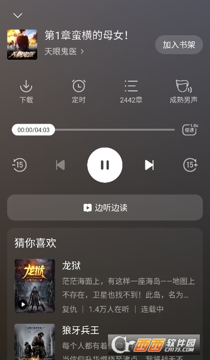 2、AI智能听书,解放双眼:内置高品质语音合成引擎,支持多种风格语音包自由切换——温柔知性女声、沉稳磁性男声、活泼灵动童声,总有一款契合你的故事氛围。一键开启听书模式,支持后台播放、锁屏续听,让阅读场景无限延伸。
