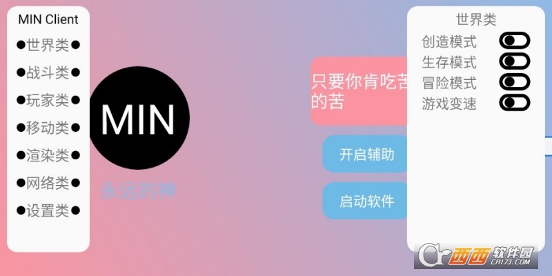 1、打开软件会进入上图页面,这里可以选择开启辅助既是开启悬浮窗功能,启动软件则是进入该辅助软件。