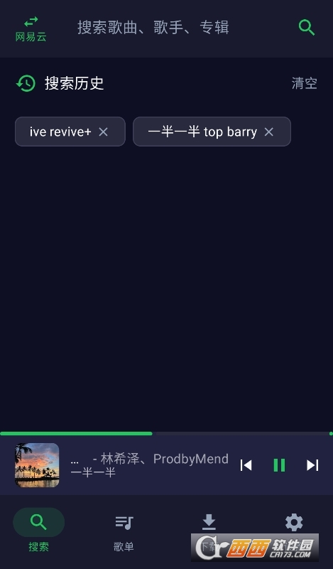 1、打开App,首页顶部搜索框输入歌曲名、歌手或专辑,秒级呈现结果。