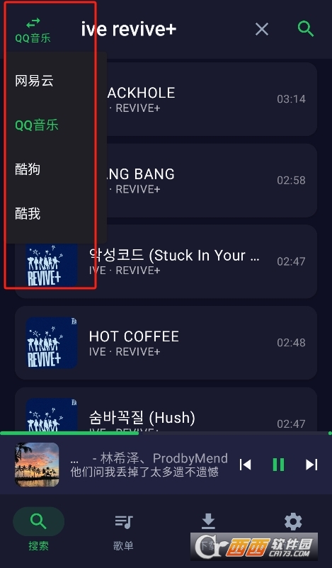 1、点击左上角切换歌源