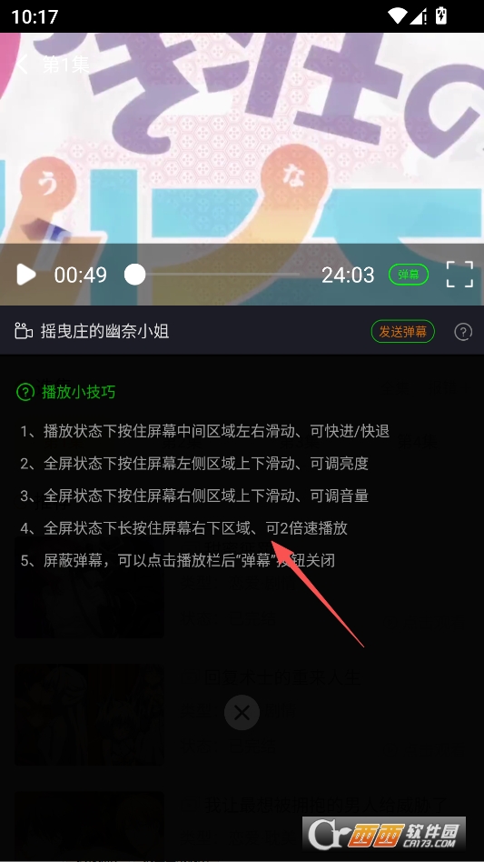 长按全屏右下角区域即可呼出倍速列表进行倍速播放