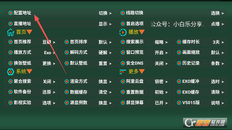 在设置菜单中点击左上角的配置地址选项