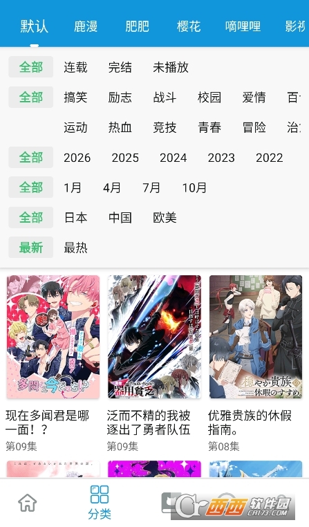 2、点击底部“分类”标签,进入分类页面,可按题材或标签筛选动漫。