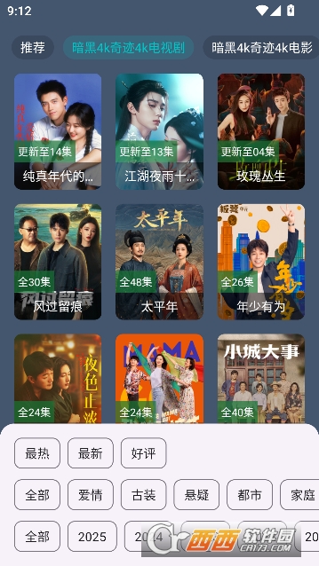 2,还能按照类型,题材,更新时间进行筛选分类