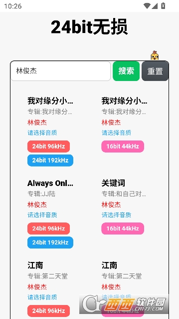 24bit无损音乐app免费版是一款完全免费的在线音乐播放神器,无需任何会员也不用登录账号,在线畅享各大平台VIP无损高质量音乐,支持歌手/歌名/关键词全网快速搜索,点击感兴趣的歌曲就能直接播放,还能选择音质进行缓存下载,内置歌曲与歌手排行榜单参考推荐,满足不同用户的使用需求 。