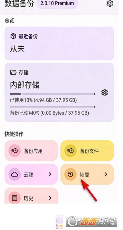3.高效数据恢复:支持一键恢复全部备份数据,也可选择性恢复指定文件,避免恢复冗余数据占用存储空间;恢复速度相较于传统备份工具提升3-5倍,且恢复后的数据与原始数据保持一致,无丢失、无损坏,更换设备时可实现无缝数据迁移,真正做到“一键换机无忧”