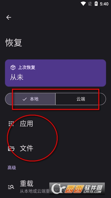 2、选择是恢复本地还是云端,选择应用或者文件。