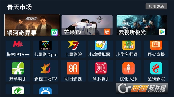 春天市场tv版电视版下载安装是一款专为安卓智能电视和电视盒子设计的应用商店类工具。它就像电视端的“应用宝库”,将海量优质的电视应用汇聚一堂,让用户可以通过遥控器轻松浏览、搜索、下载和安装各类应用。平台上的应用经过严格筛选和测试,确保兼容性和安全性,杜绝恶意软件和广告插件。