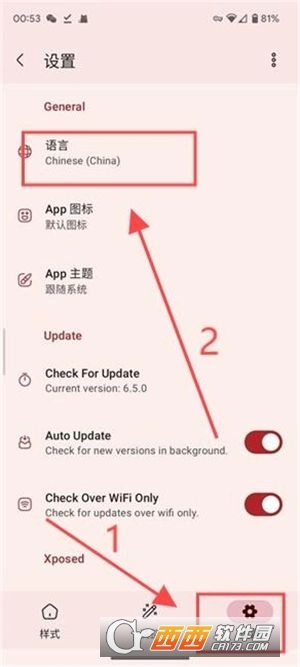 2. 进入之后,选择【设置】中的自定义语言选项,手动将其调整为中文。