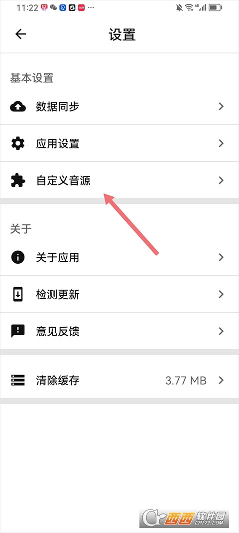 3、在设置界面中点击【自定义音源】