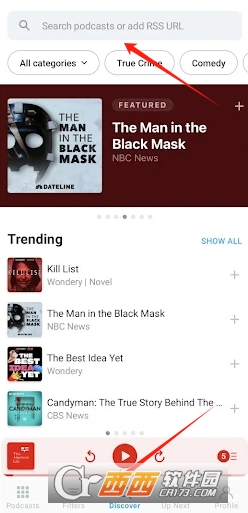操作逻辑简洁:核心功能集中在 Podcasts、Filters、Discover、Up Next、Profile 五大导航栏,文件夹管理订阅播客、过滤器快速筛选音频、关键词搜索节目等操作均一步到位,界面布局清晰明了,无复杂层级,新手也能快速熟悉所有操作。