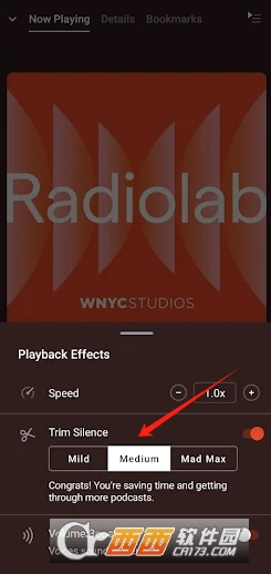 智能音频优化:支持播放速度自由调节,搭配静音裁剪、人声增强的音量提升功能,可根据收听场景选择轻度、中度等不同静音裁剪模式,有效节省收听时间,还能精准调节声音大小,让不同音质的播客内容都能适配听觉需求。