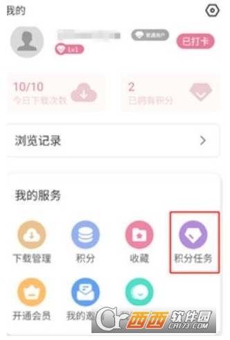 1、在“我的”页面里找寻积分任务,随后进入积分任务页面。