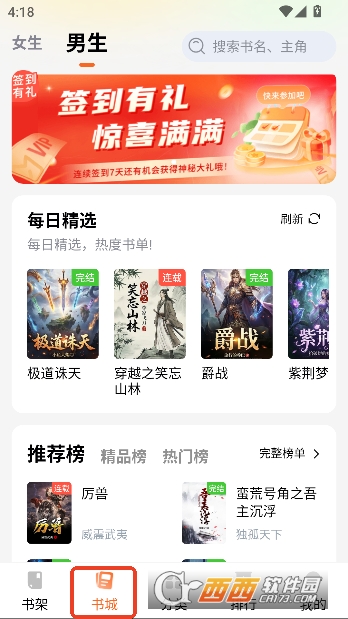 1,书城首页提供每日精选推荐