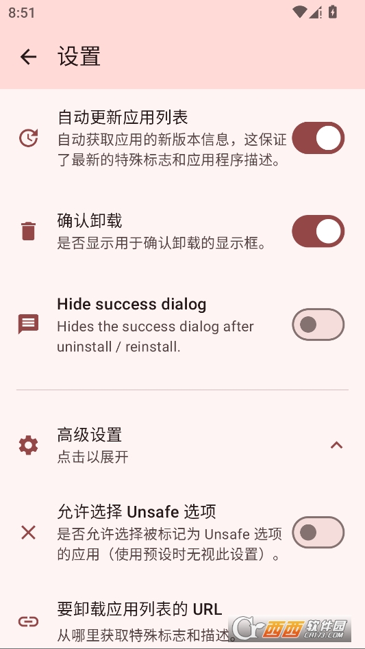核心功能是免root应用卸载,借助Shizuku平台的权限支持,无需root就能卸载手机内所有应用,包括用户安装的第三方应用和厂商预装的系统应用,采用非破坏性卸载方式,仅禁用应用组件、保留原始APK文件,即使误操作也能通过恢复出厂设置复原,避免设备变砖。